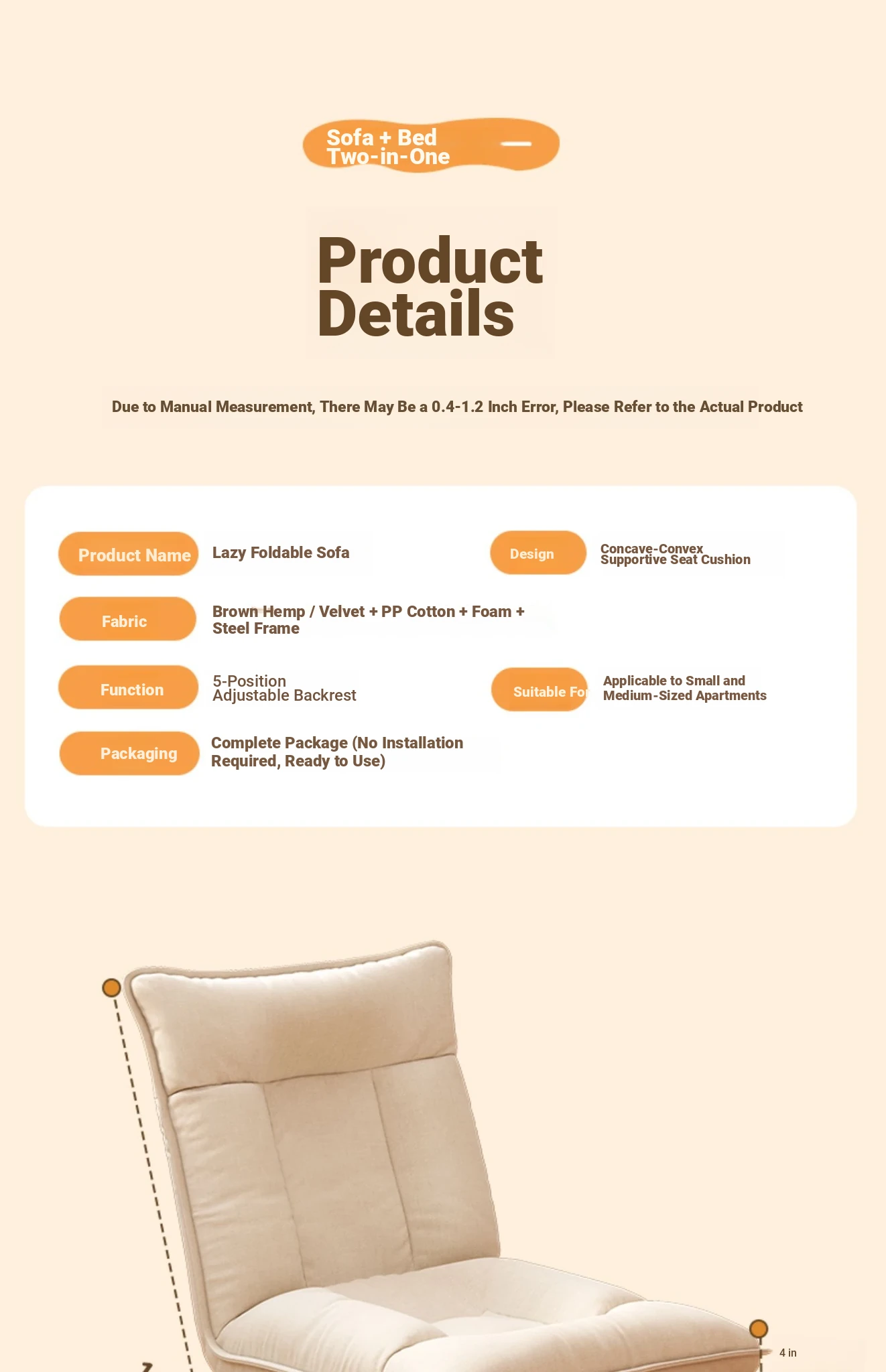 Adjustable Lazy Sofa for Bedroom and Bay Window - Foldable Single Leisure Chair for Tatami Living Room, Perfect for Relaxing and Napping