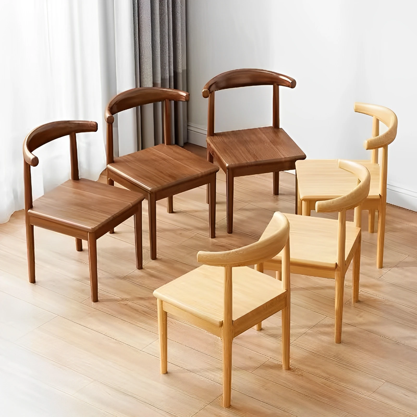 Minimalist Home Dining Chair - Versatile Horn Back Chair for Bedroom, Study, and Office - Ideal for Computer Work and Learning - Stylish Faux Wood Design