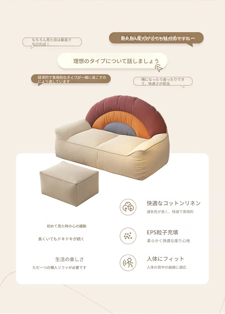 リラックスできるローソファ!寝転んでも快適、バルコニーや寝室にぴったりな人気の小さなソファ。タタミスタイルの座椅子で、くつろぎの時間をお楽しみください!