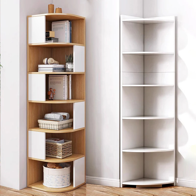 角にフィットする三角形の本棚!家の隅を有効活用するためのスタイリッシュな置物ラック。落ち着いたデザインで、寝室やリビングにぴったり!収納力抜群で、インテリアにも最適なアイテムです。