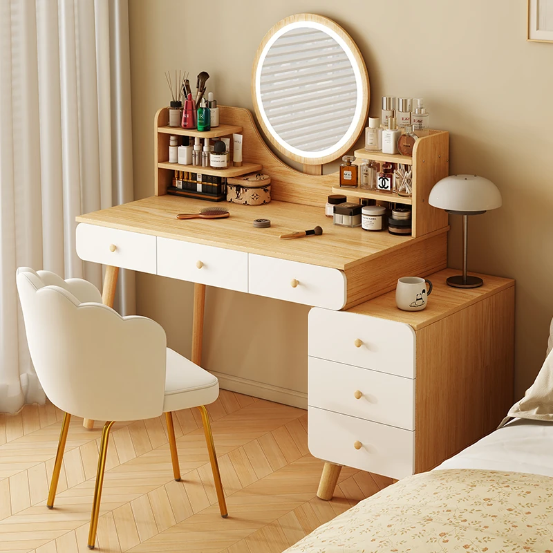 自然木目のドレッサー - コンパクトな化粧台&書斎デスク!2025年新作、ベッドサイドテーブル兼収納キャビネットとしても使える、スタイリッシュなコーナー家具でお部屋をおしゃれに演出!