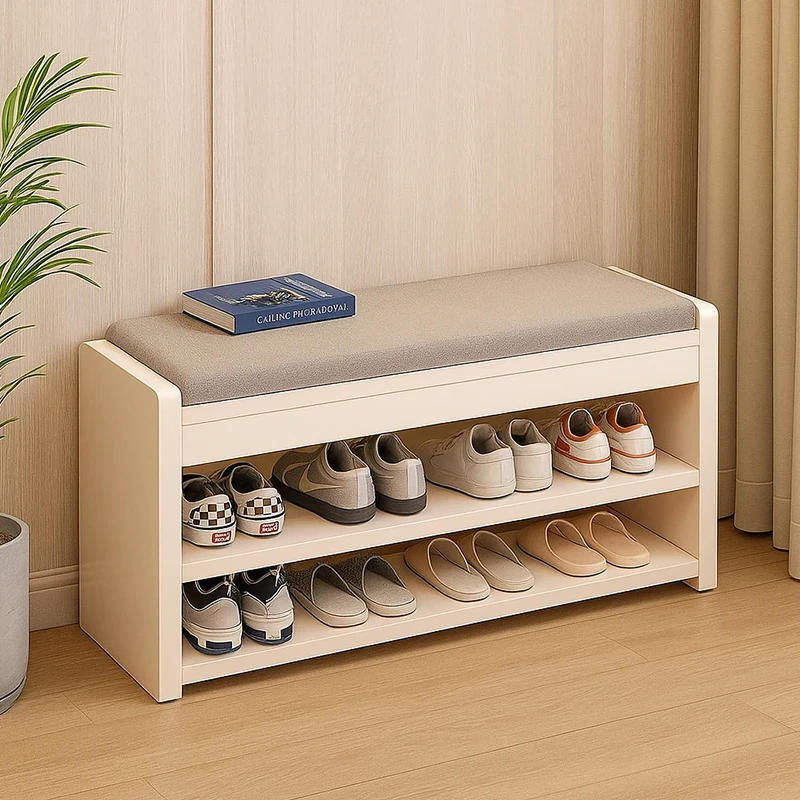玄関用スリッパチェア - スタイリッシュな収納シューズラック一体型!座って靴を履くのも簡単、収納スペースもたっぷり。おしゃれで機能的なデザインで、家の入り口をスッキリ整理整頓!
