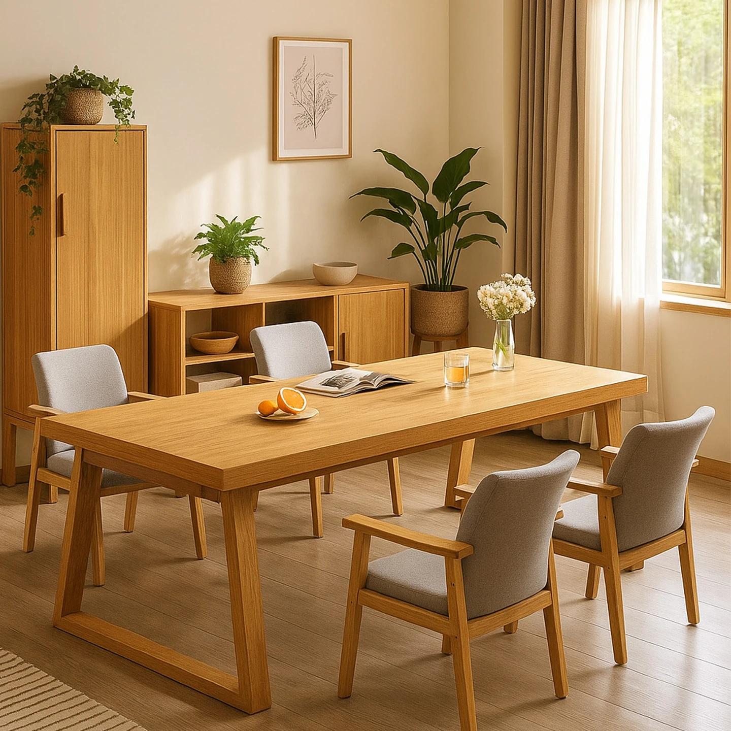 無垢材の茶卓椅子セット|家庭用・大きな茶台|お茶を楽しむためのリラックススペース|オフィス商談にも最適なシンプルでスタイリッシュなデザインのテーブル