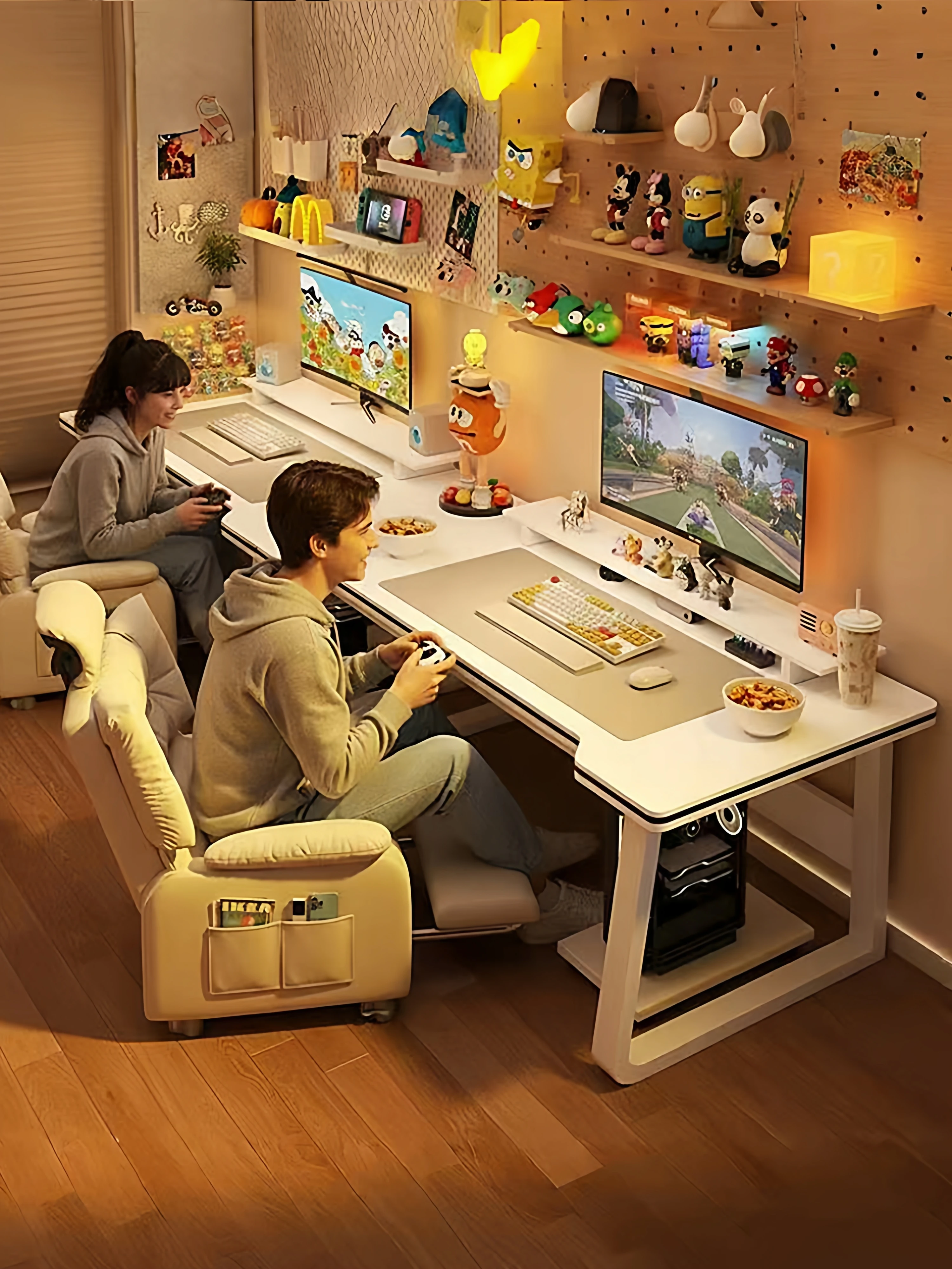 New Double Gaming Desk for Home - Stylish Desktop PC Table for Couples, Perfect for Bedrooms or Gaming Rooms, Spacious and Comfortable for Side-by-Side Play - Ideal Long Rectangular Design