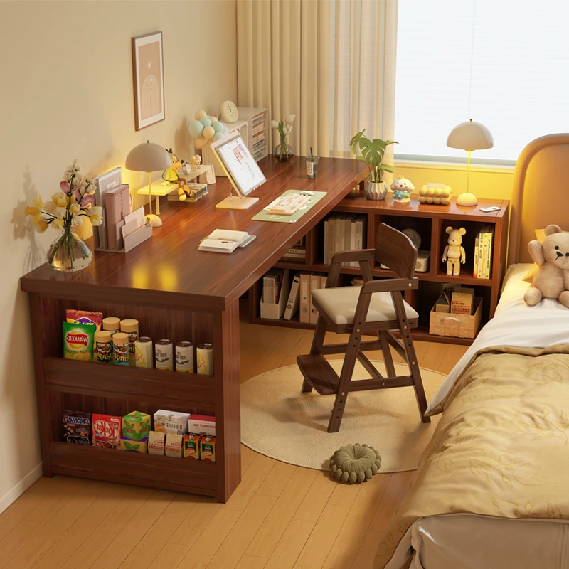 L-Shaped Corner Desk with Bookshelf - Stylish Study and Home Office Computer Desk for Students and Workspaces