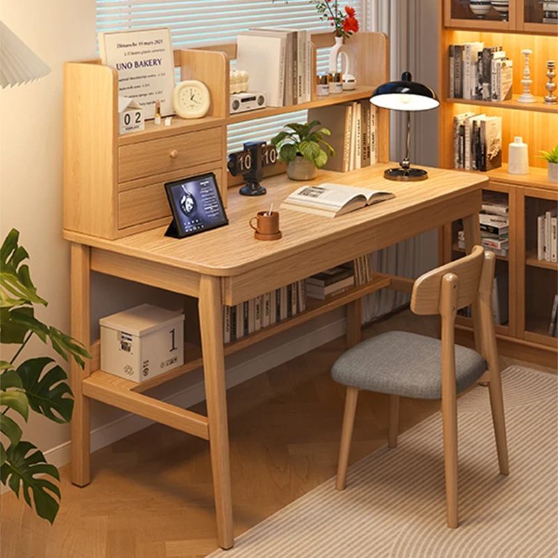 Compact Solid Wood Desk and Bookshelf Combo – Ideal for Small Spaces, Perfect for Students and Home Use, Features Drawers for Storage, Perfect for Writing and Computer Work