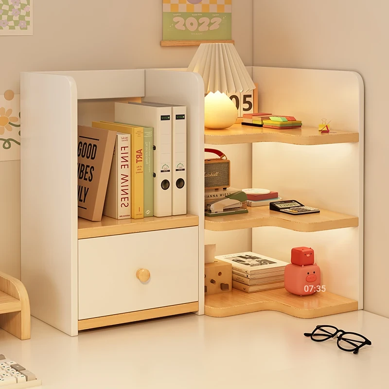 Corner Desktop Bookshelf Organizer - Multi-Tier Storage Cabinet for Home Office, Compact Bookcase for Efficient Space Management