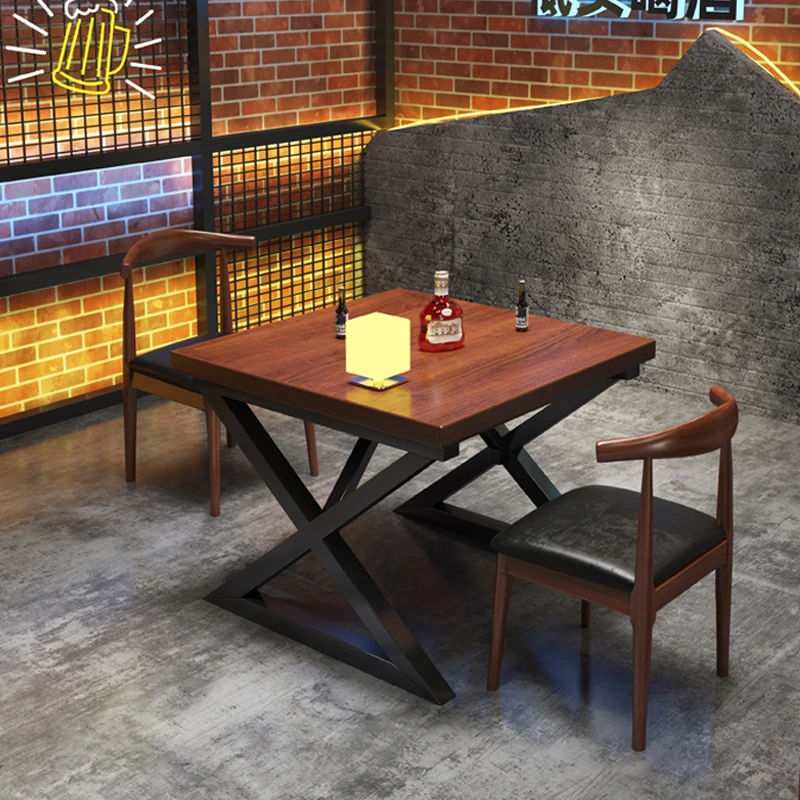 Retro Café Table Set for Restaurants, Bars, and Snack Shops – Perfect for Hot Pot, Fast Food, and Milk Tea Venues, Featuring Stylish Booth Seating and Chairs.