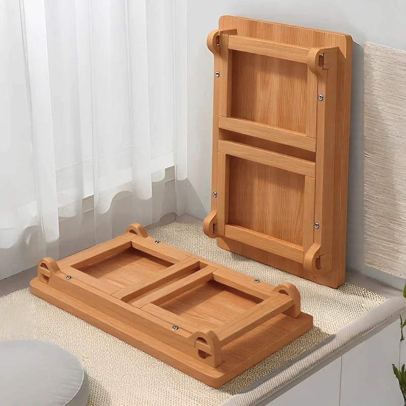 Solid Wood Folding Table - Compact Tatami Tea Table for Home Use, Perfect for Bay Windows or as a Bedside Dining and Study Desk. Ideal for Small Spaces!
