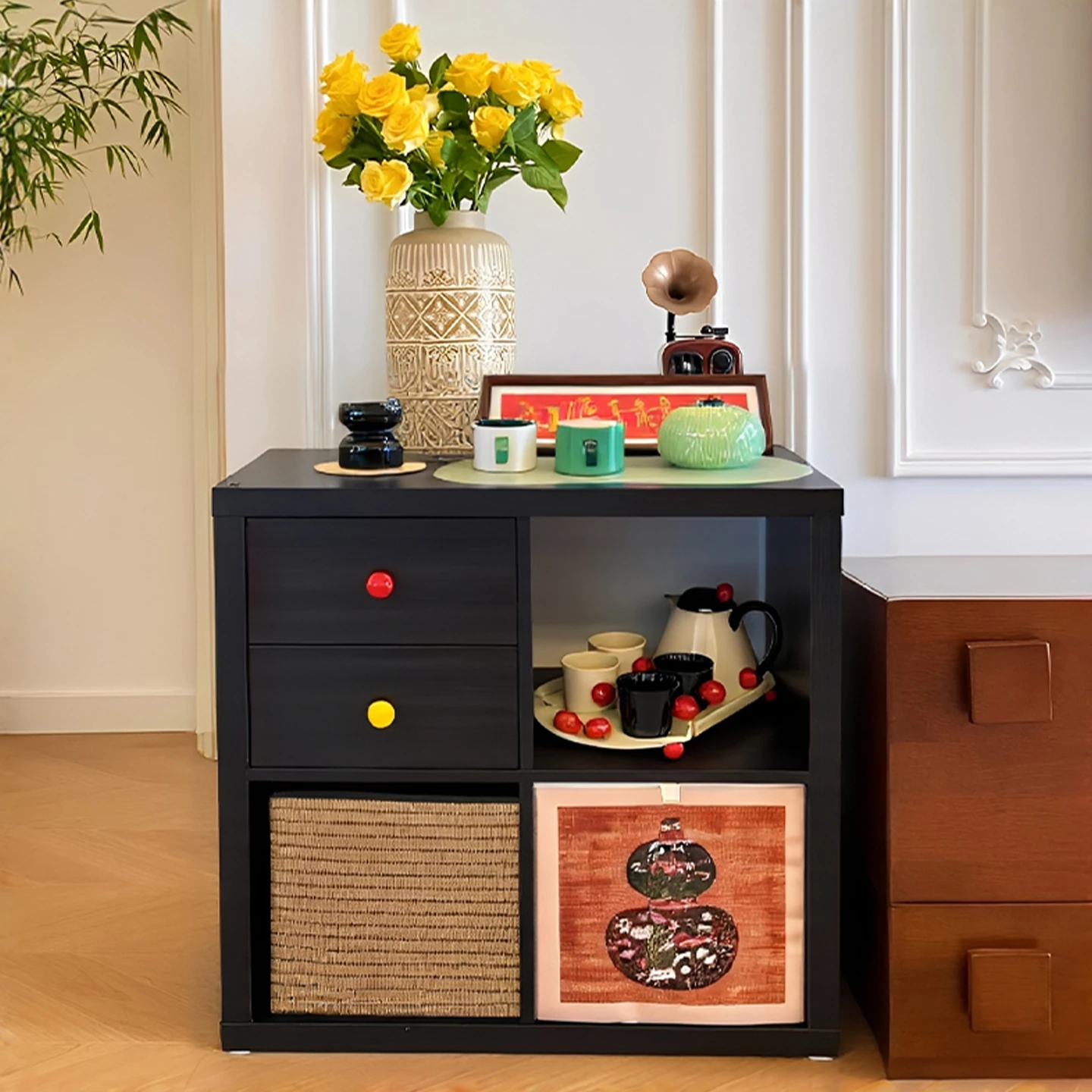 ナチュラルウッド風のフロア書棚 - カラフルなグリッド収納キャビネット、家庭用引き出し付き、リビングルームにぴったりのソファサイド収納キャビネット!おしゃれで便利な収納ソリューション!