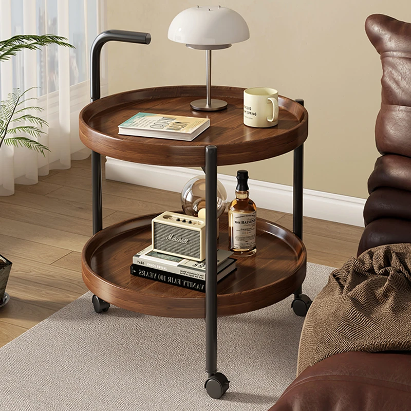 移動式のアンティーク風ティーテーブル・小型キャビネット 2025年新作!リビングや小さな部屋に最適な丸型テーブル&収納ラック。おしゃれで便利なベッドサイドテーブルにも!
