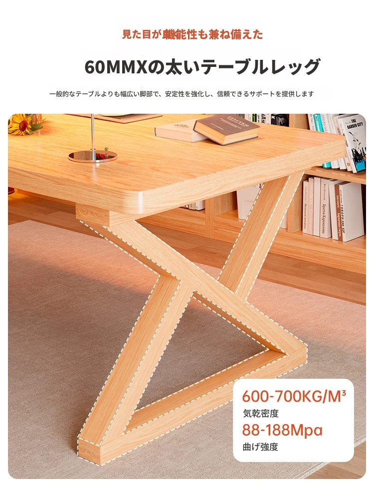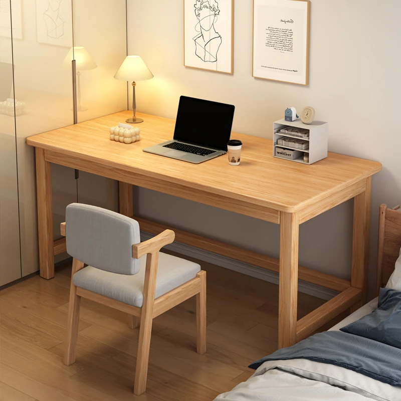 天然木材使用の学生向け学習デスク!シンプルでスタイリッシュな長方形デザイン、家庭や寝室に最適なコンピューターデスク。心地よい作業環境を提供し、学習や仕事の効率をアップ!