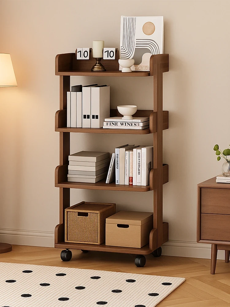 移動可能なスタンド式ブックシェルフ - 壁掛けデザインで省スペース!簡単収納の多層キャビネットは、デスク周りや絵本の整理に最適です。おしゃれで実用的な収納ソリューションを手に入れましょう!