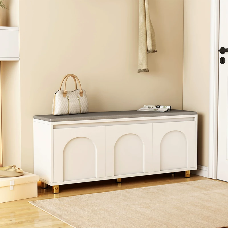玄関用スツール一体型シューズキャビネット - おしゃれで実用的なクリーム風デザイン、家の入り口で快適に靴を履ける!シューズラックとベンチが一体化、狭いスペースにもぴったり!