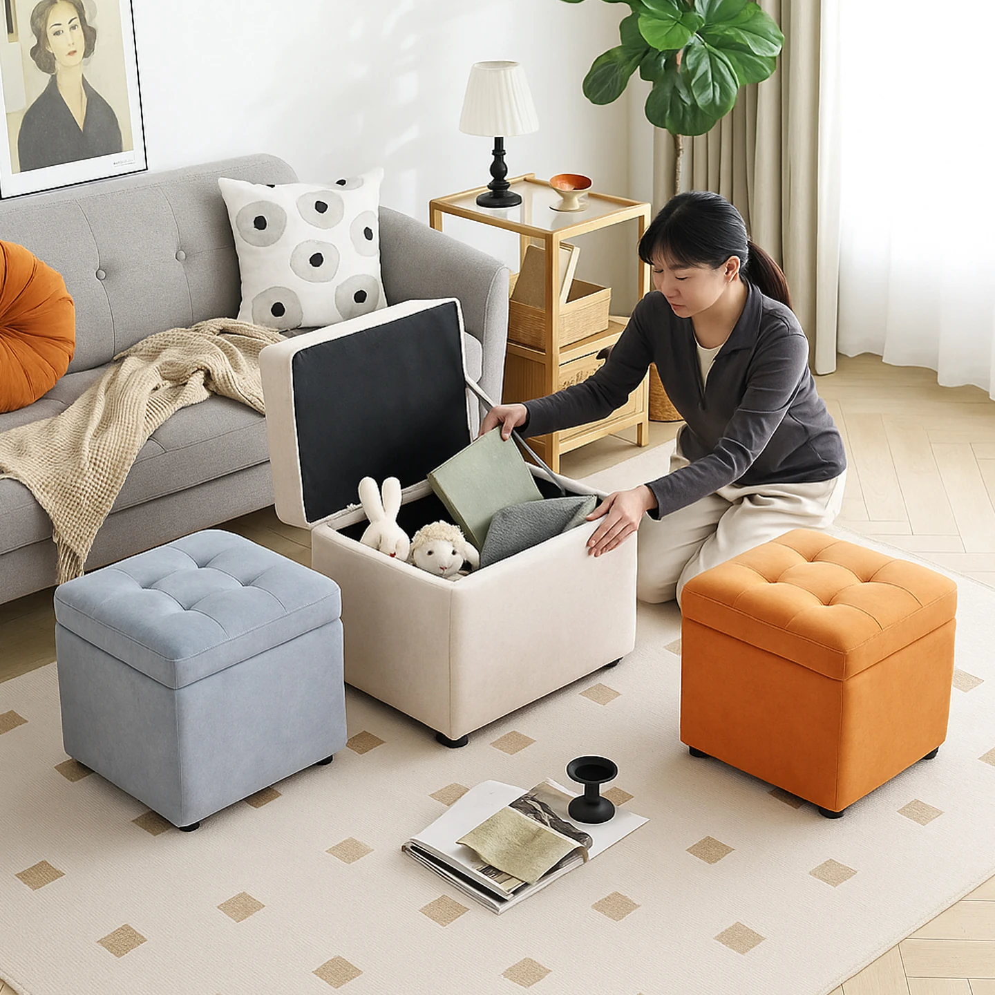 Portable Storage Ottoman - Versatile Sofa Stool for Home Use, Ideal for Clothing Store Fitting Rooms, Easy-to-Move Bench for Living Room and Entryway Shoe Changing.