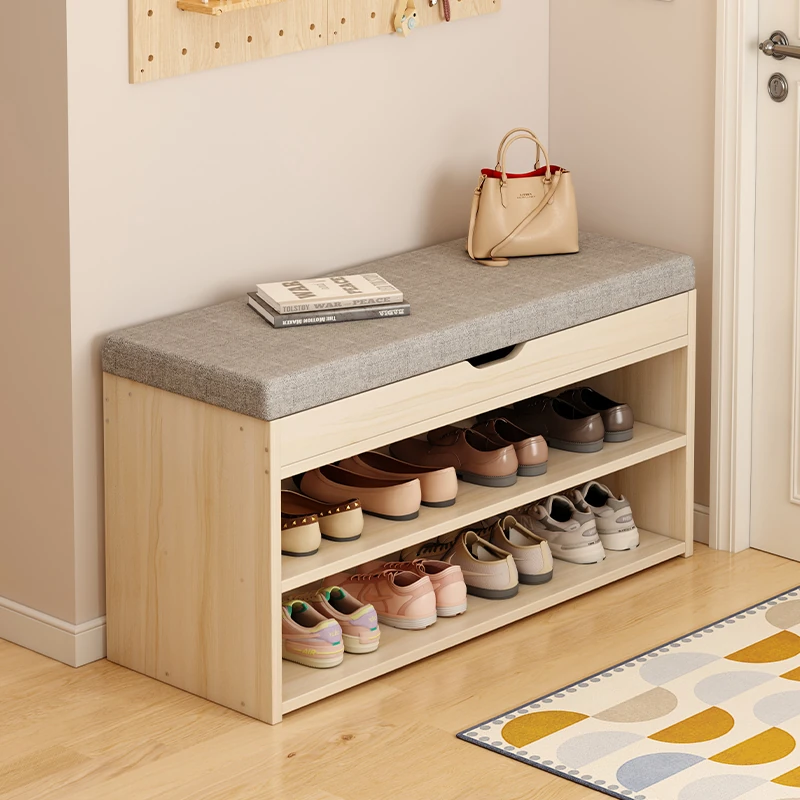 Cream-Style Entryway Shoe Bench with Storage - Versatile Home Entrance Seating and Shoe Rack Combo for Easy Shoe Changing and Organizing