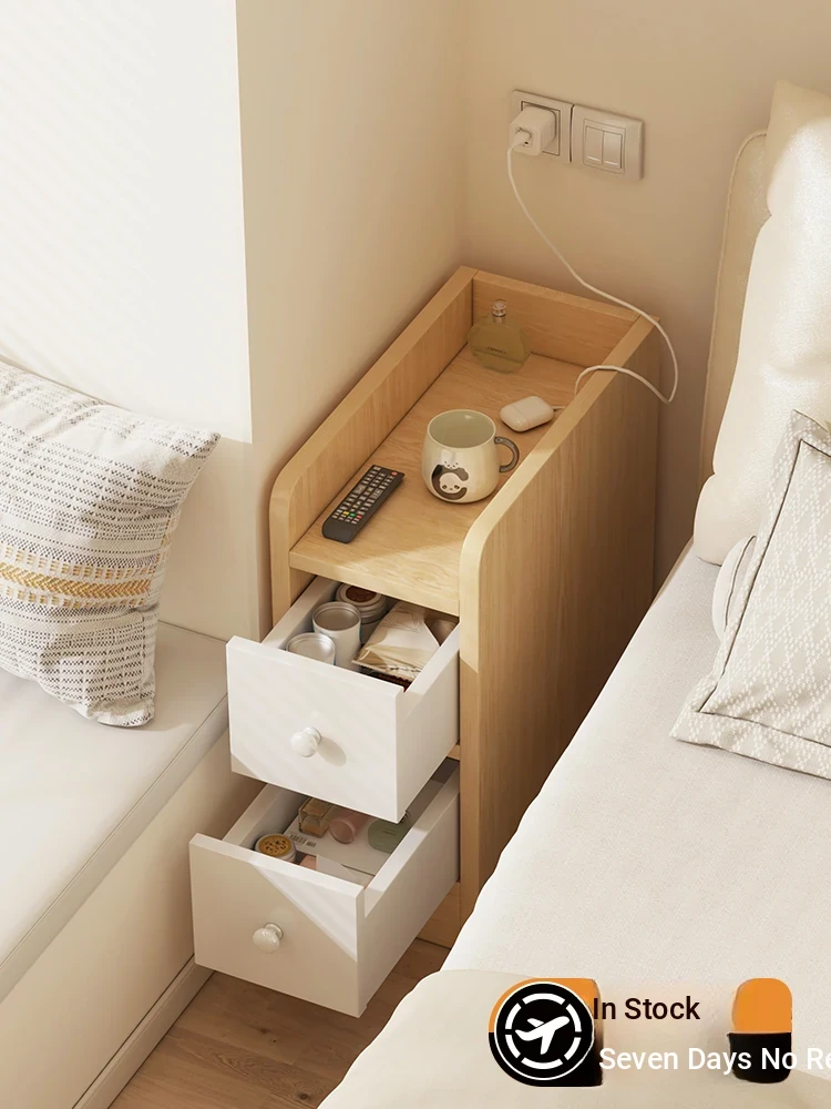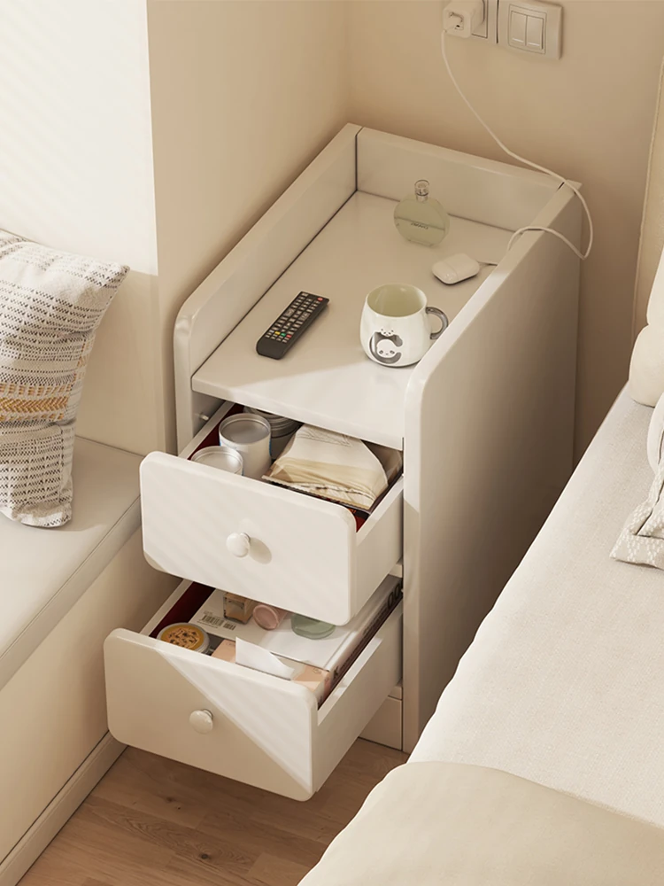 2025 Trending Mini Cream-Style Nightstand: Space-Saving 20cm Narrow Storage Cabinet for Bedroom - Perfect Home Organizer!