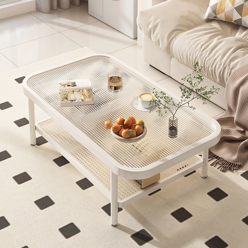 Elegant Cream Coffee Table with Tempered Glass - Modern Double-Layer Square Sofa Table for Living Room, Perfect for Small Spaces and Home Use