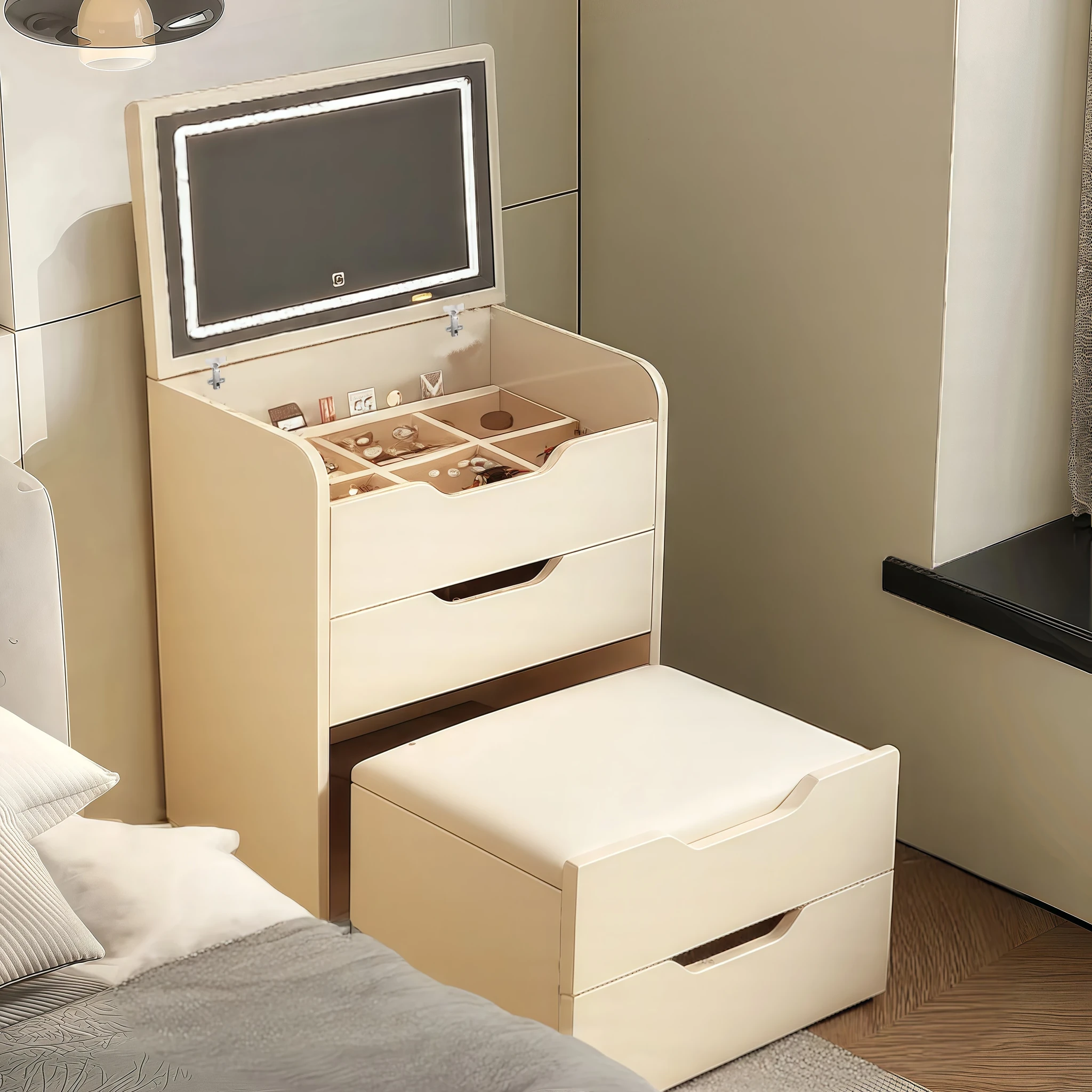 2025 New Makeup Vanity with Integrated Mirror - Compact Folding Design for Small Spaces, Perfect for Makeup Storage and as a Stylish Nightstand