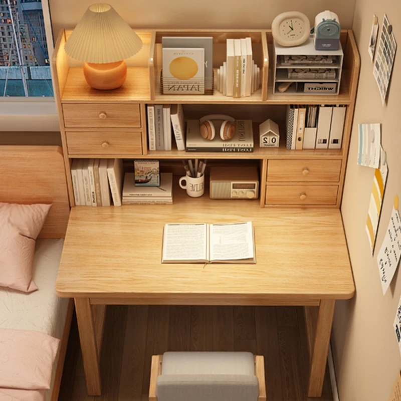 Solid Wood Desk with Bookshelf - Simplified Student Study Table for Writing and Computer Work, Perfect for Bedroom or Office Use.
