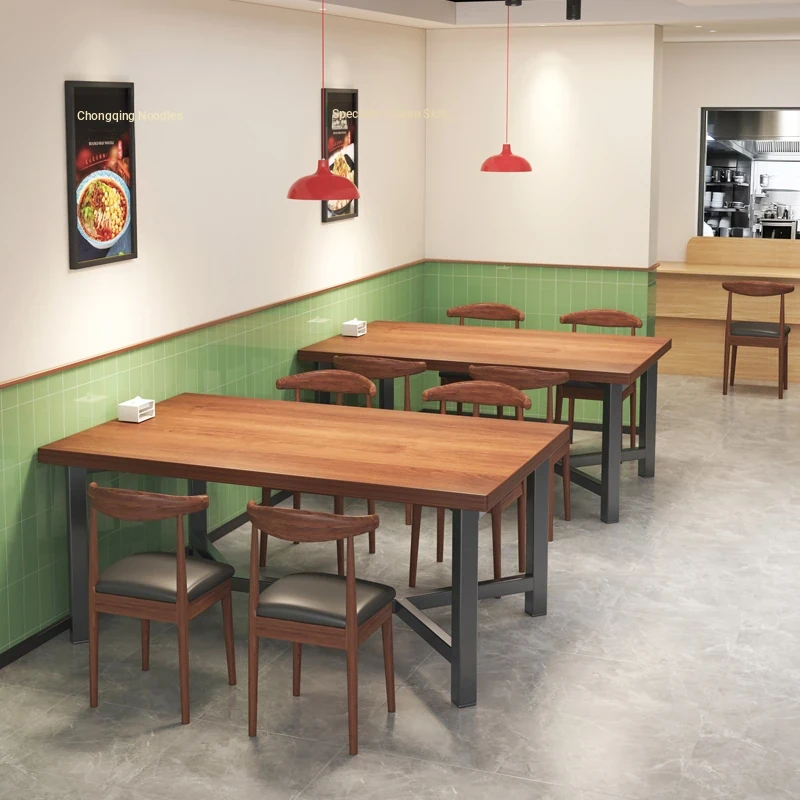Walnut Color Dining Table Set for Noodle Shops, Snack Bars, and Restaurants - Perfect for Fast Food Establishments, Featuring Durable and Stylish Chairs and Tables for Comfortable Dining Experience