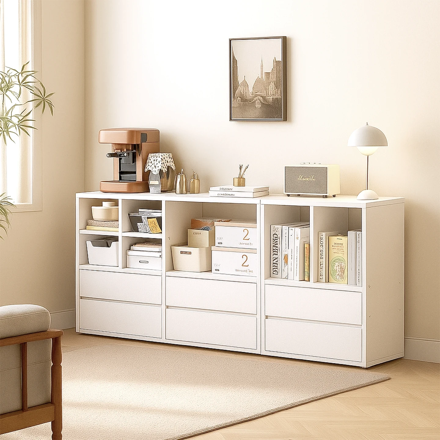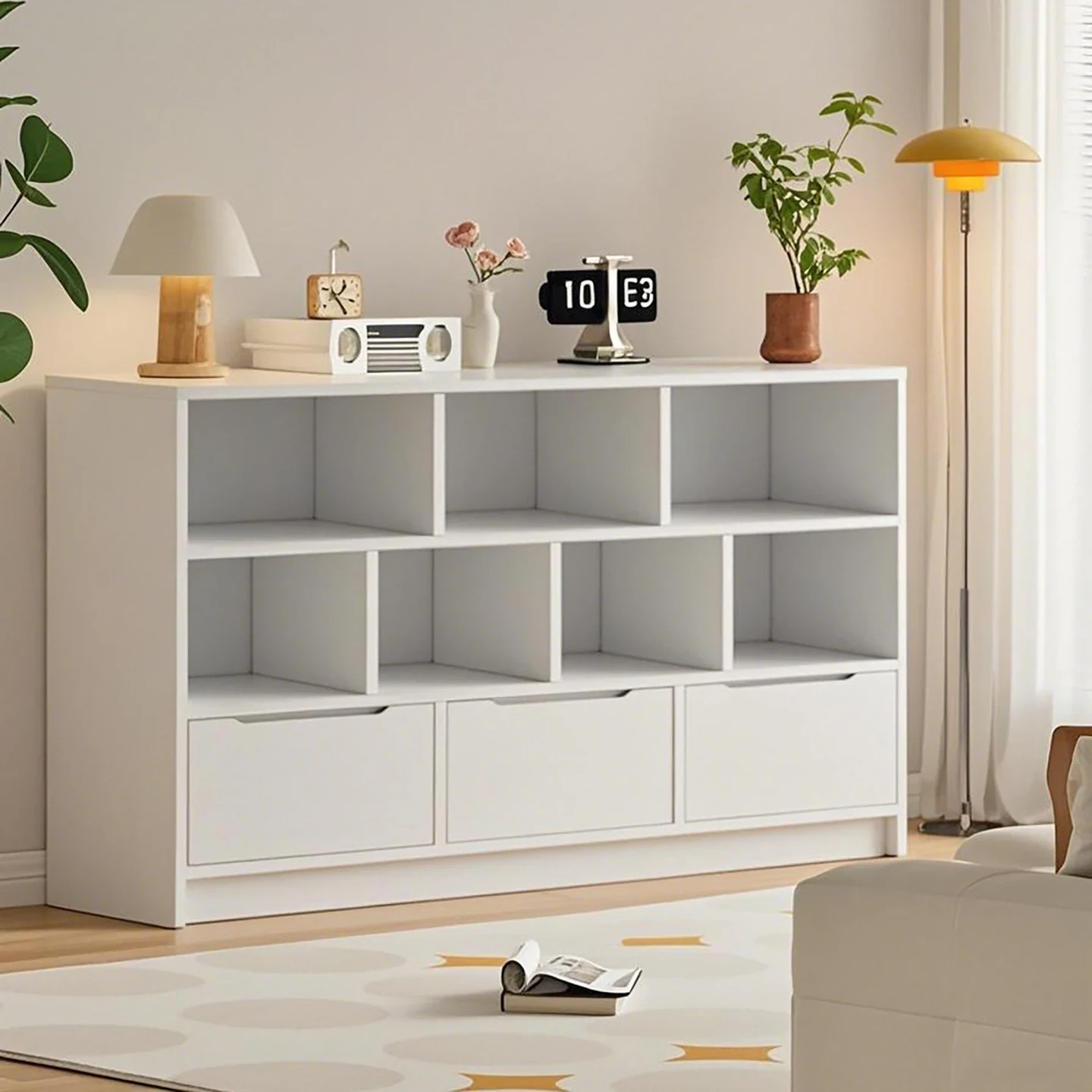 Minimalist White Floor-Standing Bookshelf Storage Cabinet for Living Room - Stylish Organizer for Students, Ideal for Home Décor and Efficient Space Management