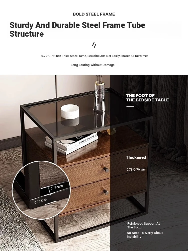 Stylish Minimalist Side Table - Elegant Iron Frame Nightstand for Living Room or Bedroom, Perfect for Sofa Side or Easy Storage Solution