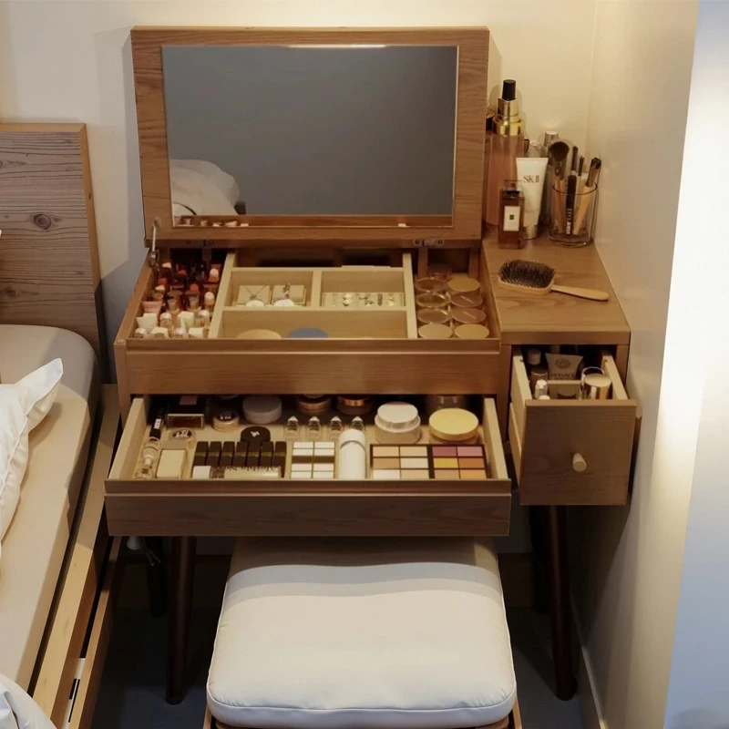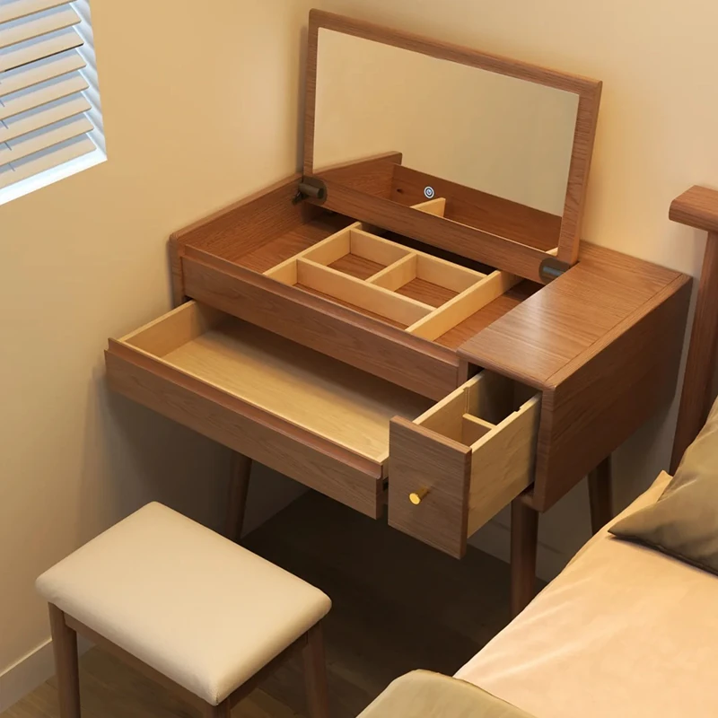 Stylish Modern Vanity Table with Flip Top – Elegant Solid Wood Makeup Desk for Girls' Bedroom, Combining Simplicity and Luxury in One. Perfect for a Chic and Functional Space!