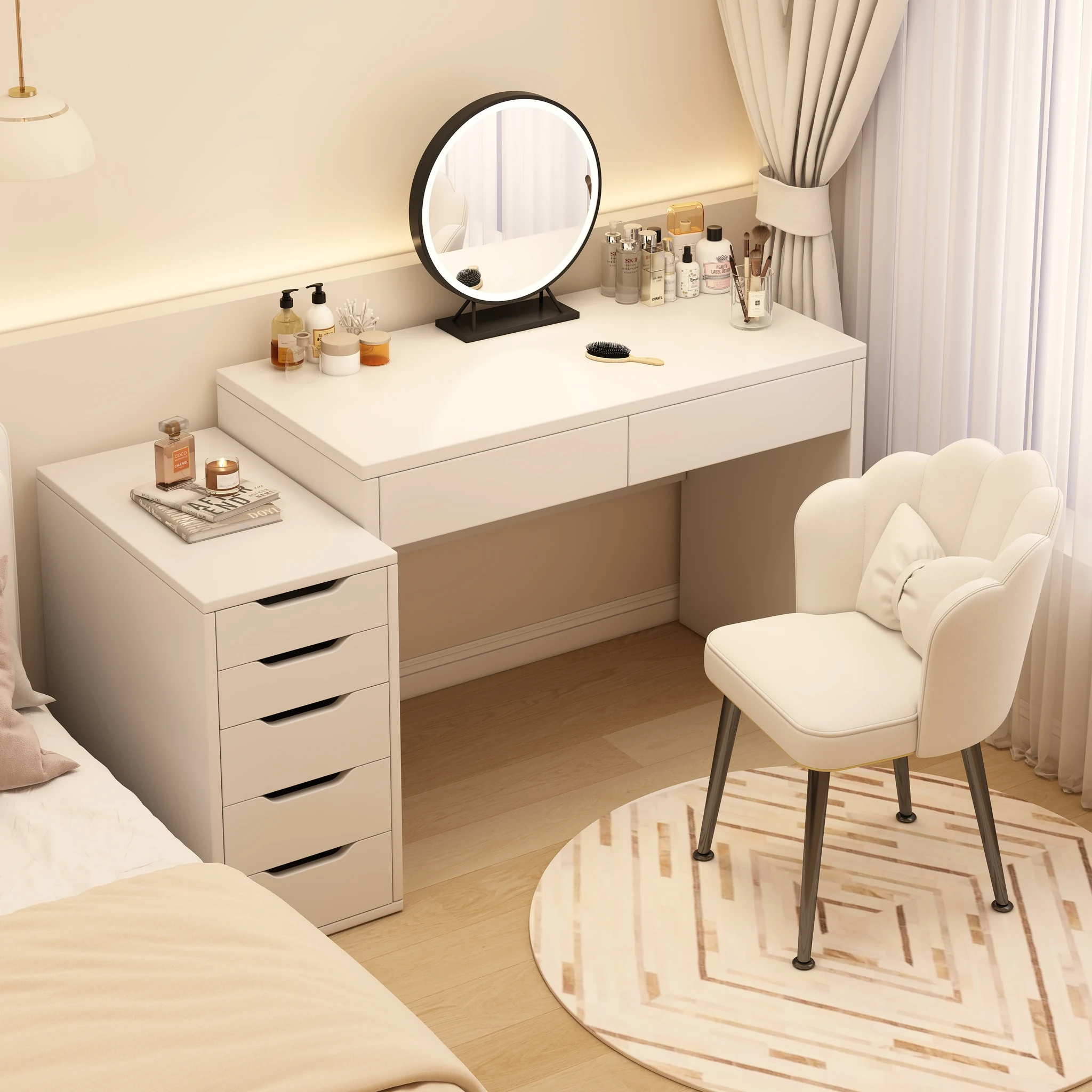 2025 New Cream-Style Makeup Vanity for Bedroom - Modern Minimalist Dressing Table and Writing Desk Combo