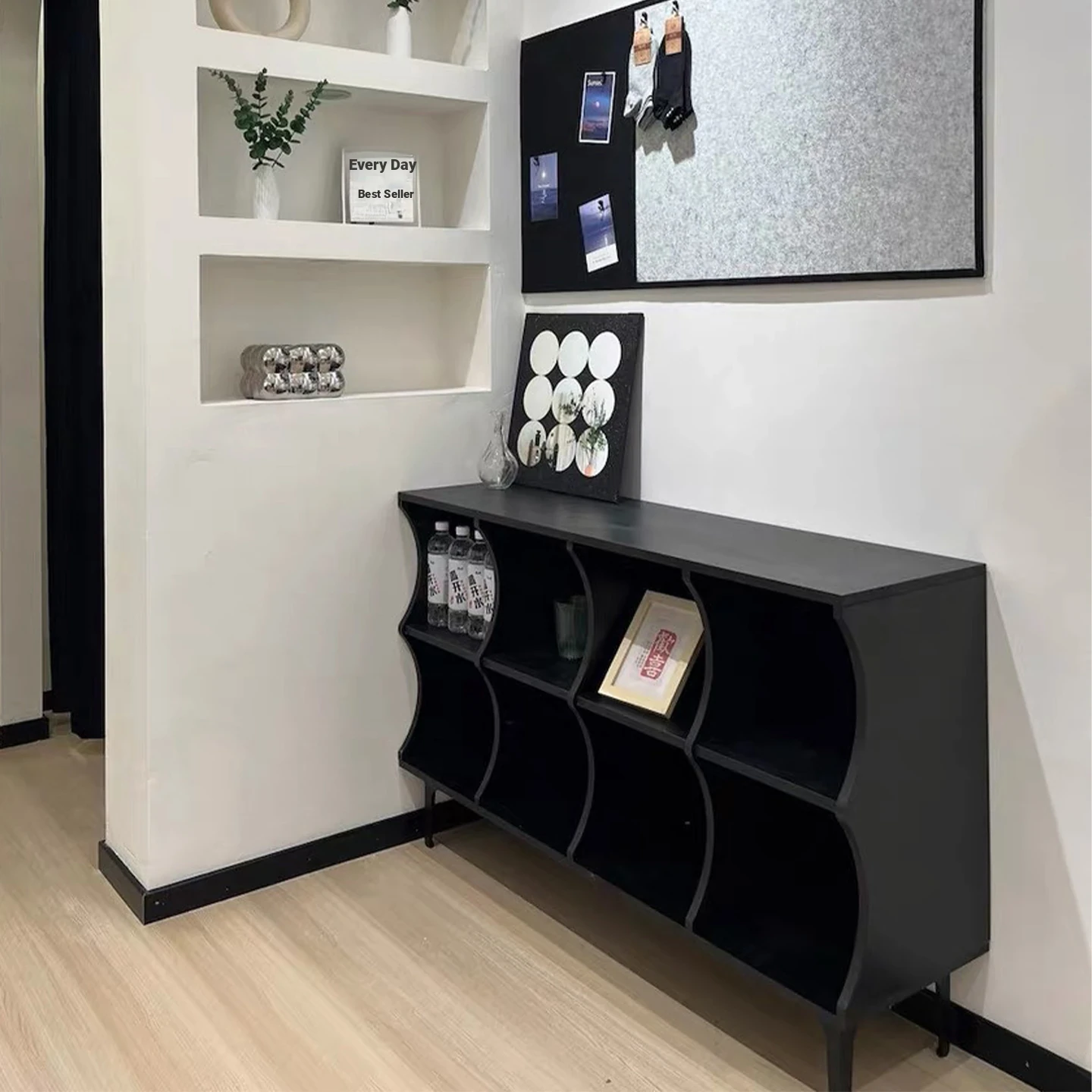 Stylish Black Steel Leg Gridded Storage Cabinet - Versatile Floor Bookshelf with Multi-Tier Design for Living Room, Perfect for Organizing and Displaying Books and Decor
